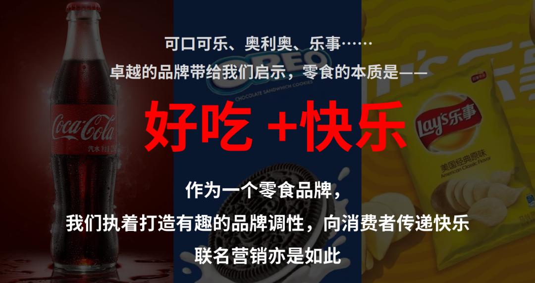 联名要与品牌的调性相一致。对于食品尤其是零食品牌来讲,它的调性或者它想塑造的品牌价值、品牌感受很简单。我们从世界范围内非常知名的食品饮料品牌来看,比如可口可乐、乐事、奥利奥……这些品牌带给我们的统一感受,就是作为一个成功的食品类品牌,好吃是第一生命线,快乐是第二生命线。如果你吃完后变得更加有负担、emo,我想它不可能成为一个成功的品牌。