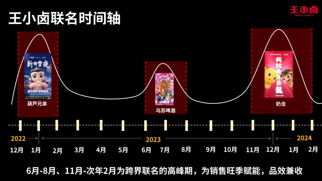 当人类的情感释放和节假日、社交集合在一起的时候,三重属性叠加促成消费爆发季,坦白讲这也是我们食品饮料行业的战斗季。王小卤联名时间轴就迎合这样的重要营销节点。