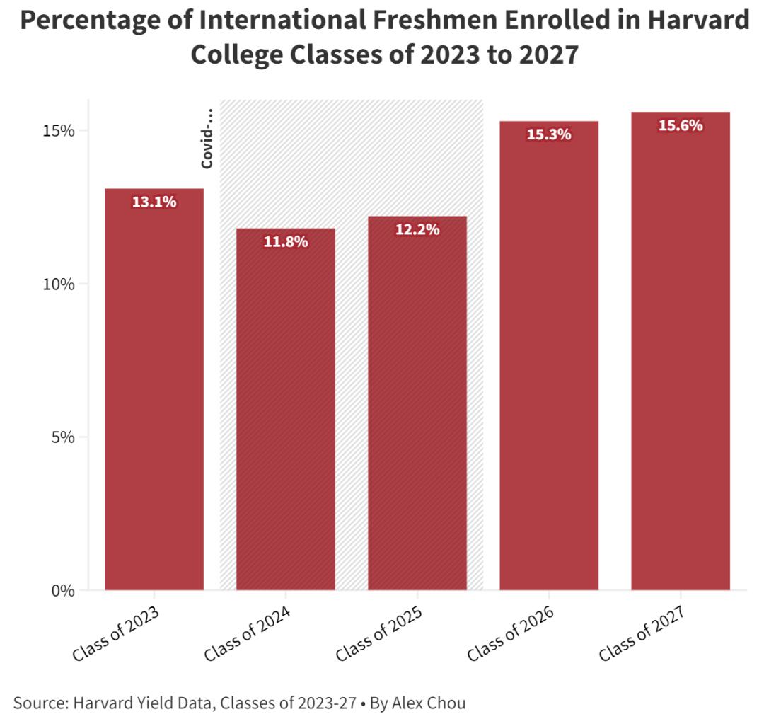 3. After Covid-19 Recovery, Harvard College Sees Rise in International Enrollment for Third Straight Year