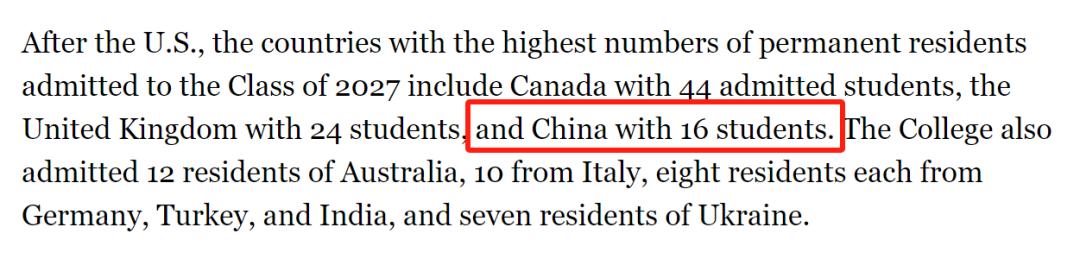 2023届-2027届国际生占比而且,看得出哈佛在多元化方面很有心。国际生的来源地区也从2024届的92个,增加到了2027届的102个。今年这一届,中国也成了加拿大(44名学生)和英国(24名学生)之后,哈佛国际生的第三大来源国,有16名学生获得了offer。