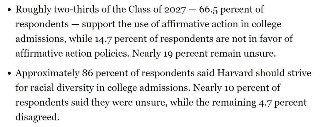 86% 的受访者表示,哈佛应该在招生中为种族多样性努力
