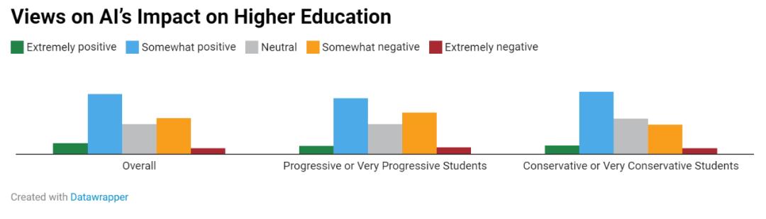即使那些对人工智能持非常积极肯定态度的学生中,也有40%的人认为人工智能给高等教育带来的负面影响值得担忧。