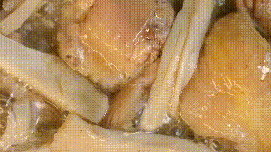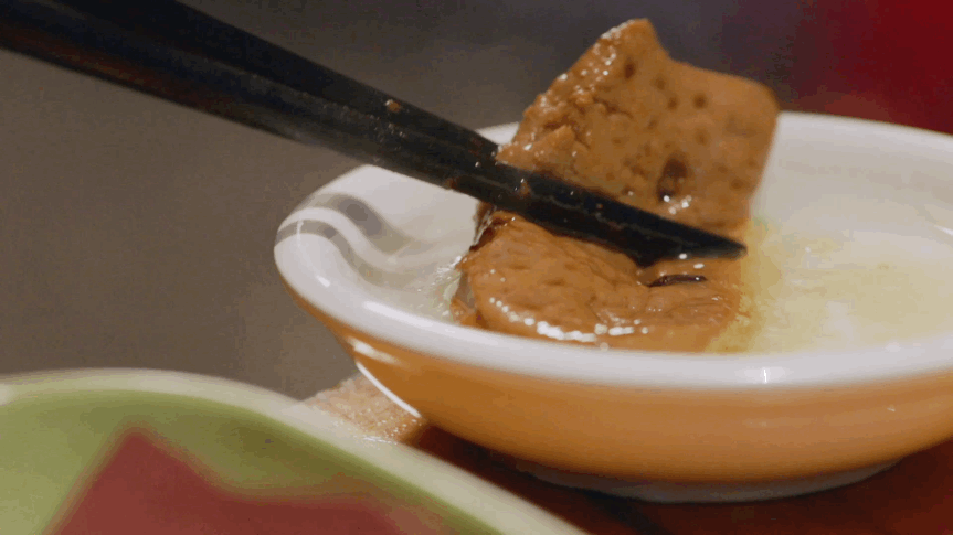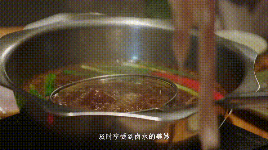 图|《沸腾吧火锅》©“村霸”狮头鹅贡献出的新鲜鹅肠、鹅肝、鹅血、鹅翅、鹅脚……是卤水火锅的主角。原本粉扑扑的鹅肝在锅里染上了老卤的淡棕色,蘸上一口蒜泥醋,酸味让卤水的咸鲜更加勾人。