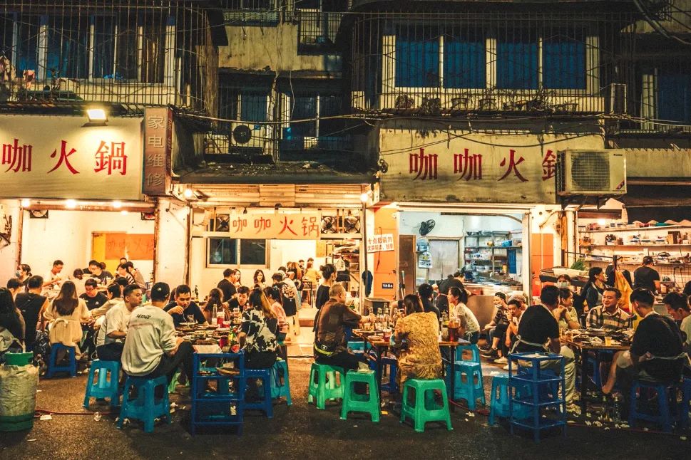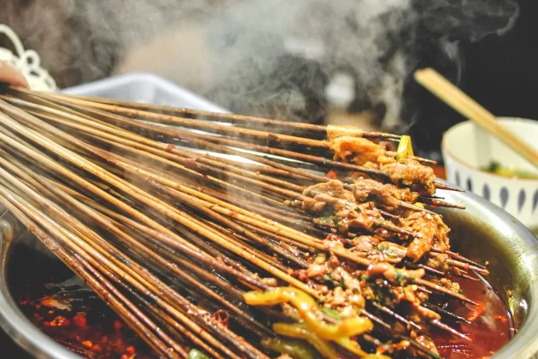 千军万马在口腔过境后,来一瓶唯怡豆奶和大碗冰粉冰醪糟,才够巴适。吃完串串嘴巴一抹,别忘了喊一声:“老板,数签签!”