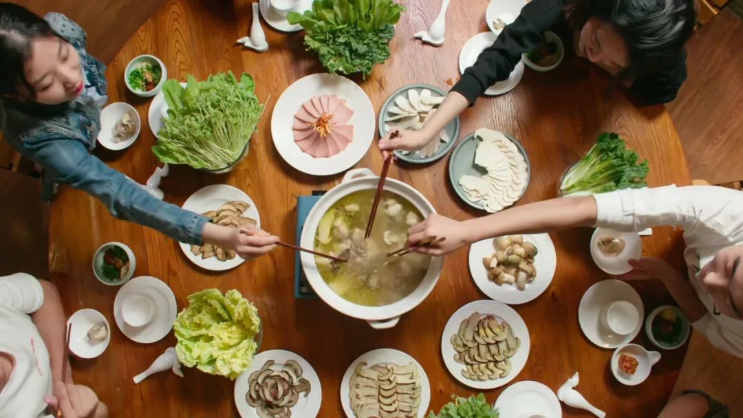 图1|《沸腾吧火锅》©重庆人对九宫格的执着精神,不输对牛油的热爱。最早起源于“拼桌”的九宫格,如今是不同食材激发滋味的奥秘所在。