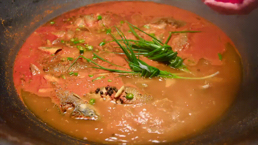 图|《沸腾吧火锅》©往白酸汤中,加入土生土长的毛辣果,酵出来的红汤通透爽朗,酸得醇厚。用来煮黄辣丁、江团、稻花鲤等,鱼肉在红汤里滚过后,皮弹肉嫩,酸楚动人。