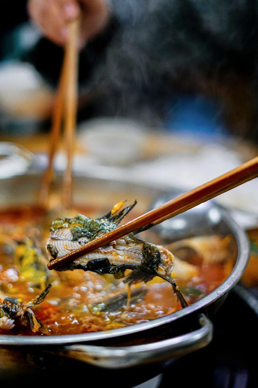 酸汤鱼的味觉密码,是汤里的野生木姜子油。如香茅草般复杂的香气,急风骤雨般袭击着唇舌,又留下柠檬般的风味余震,让人胃口大开。