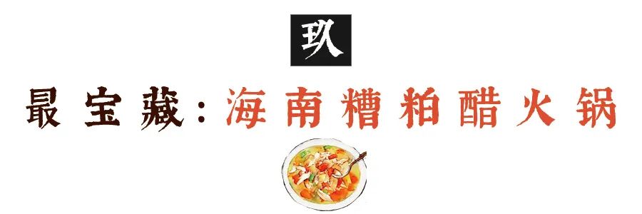 吃糟粕醋火锅,海南人自有一套理论。要先下味道清爽、滋味鲜甜的贝壳,接着,是鱿鱼、沙虫、虾蟹等脆爽海味,然后是鱼类和耐煮的陆上食材如黄牛肉、文昌鸡等,最后再次下海菜收尾。这股独特的酸爽能带着你的味蕾左奔右突,直至酸味蔓延全身,灵魂也舒爽得抖一抖。