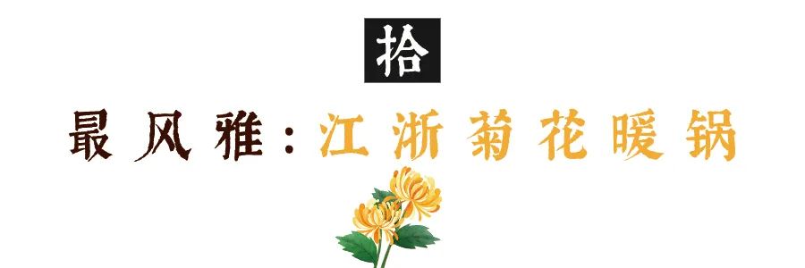 图|芳芳家©菊花暖锅里的白菊虽是主角,却不霸道,清淡的汤底反而更能衬出锅里滑鸡、鱼片的本味,更有中国诗画中“留白”的风韵,让追求至鲜的江浙人如遇知音,赞不绝口。