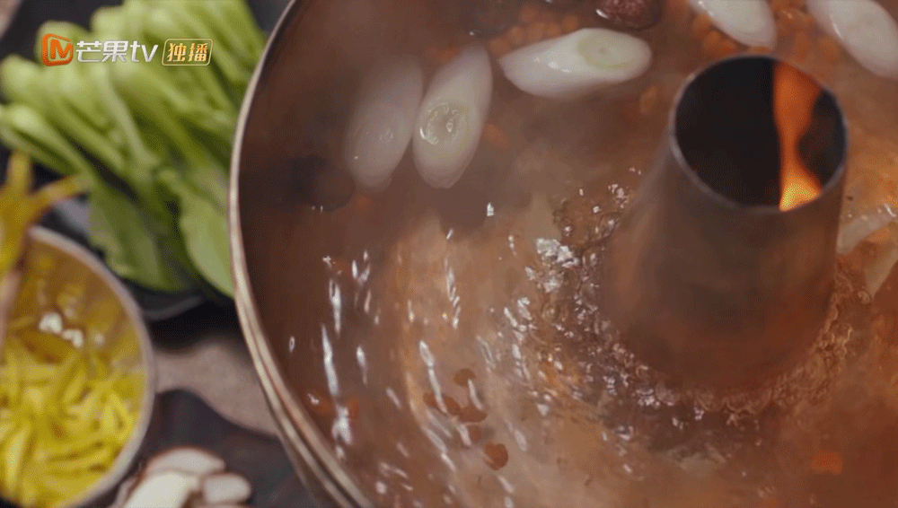 图|《沸腾吧火锅》©最先是脆嫩易熟的竹荪,之后让松露、羊肚菌等一齐下锅,让汤铺满沉郁的异香,唯有等这轮菌子吃完,鸡枞才可以最终登场,激发出一锅的鲜甜。凝聚了野生菌的所有鲜味,锅中的汤,不再是加热的场所,提味的点缀,而是一顿火锅的高潮和落点。