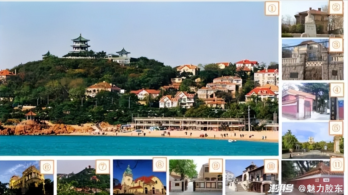 图①八大关②花石楼③公主楼④蝴蝶楼⑤西班牙风情馆⑥地质之光展览馆⑦德国黑森林音乐餐厅⑧莫奈花园⑨青岛遇见米兰⑩郭沫若书房⑪太平湾现代艺术展览馆
