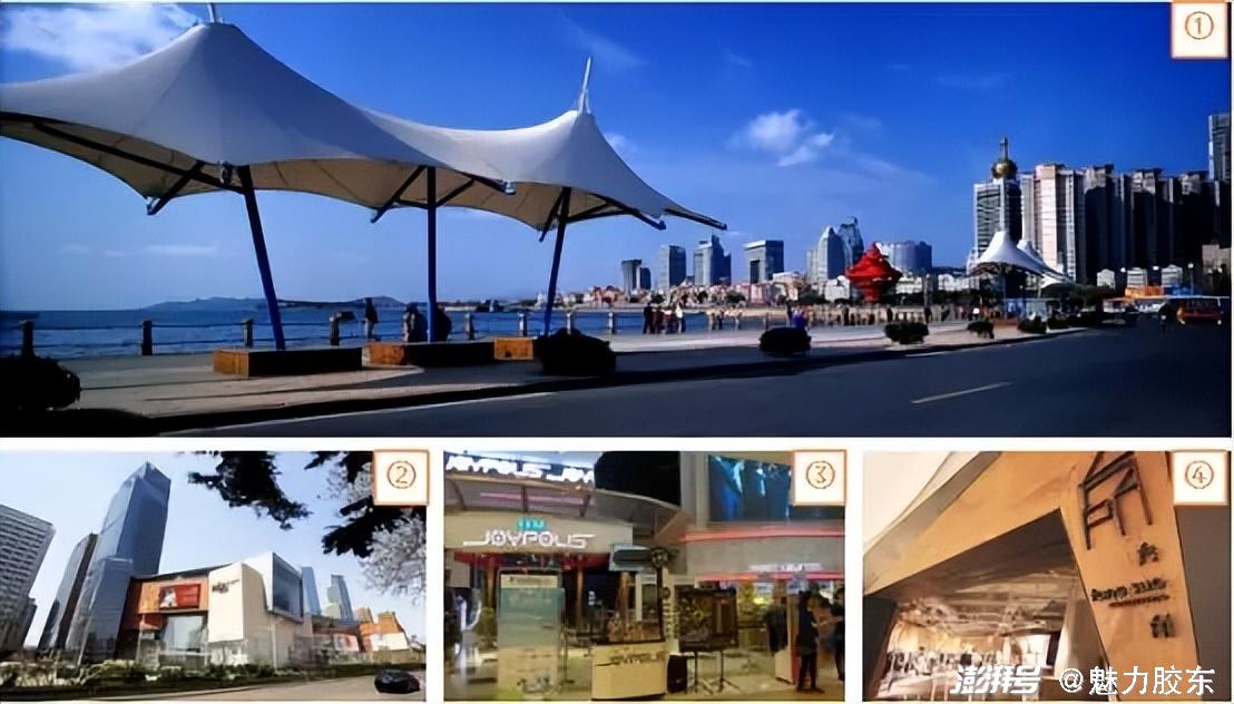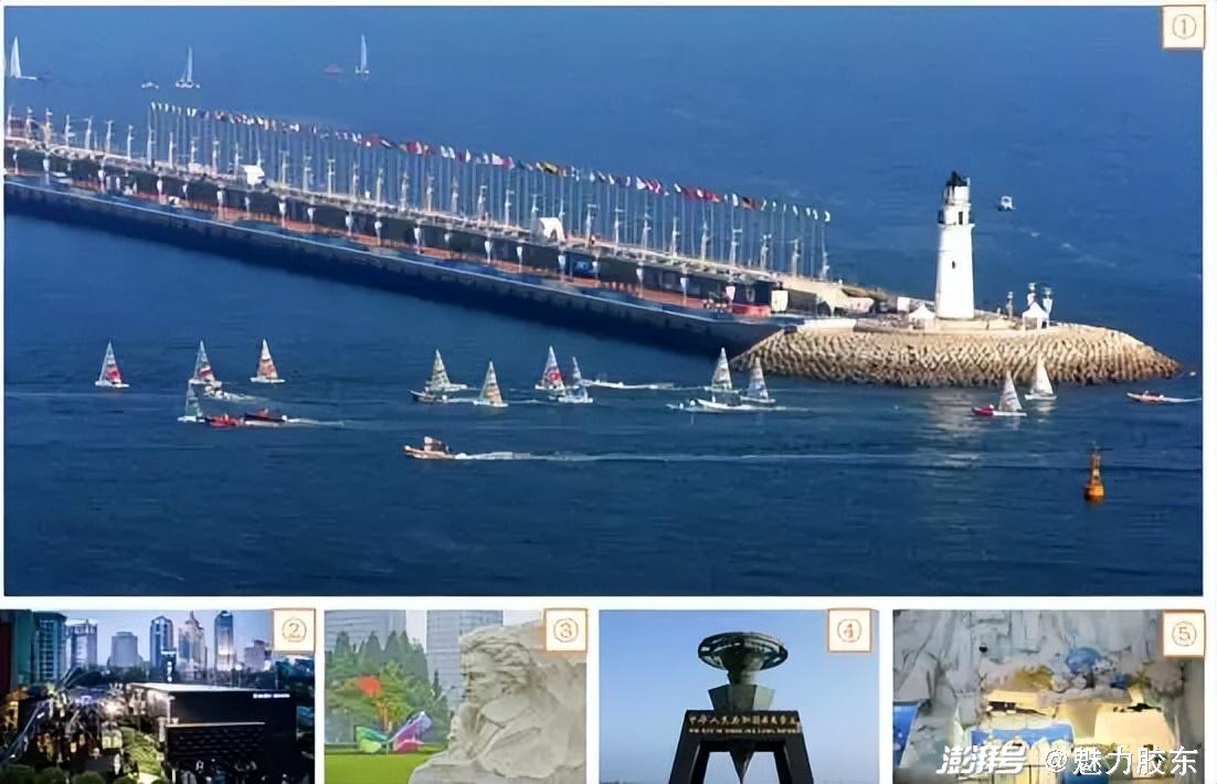 图①奥帆中心②海信广场③雕塑园④中国水准零点⑤青岛极地海洋世界
