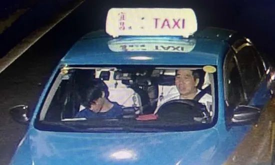 △ 邹诚俊低头坐在冉明的出租车上。宜昌市交警支队西陵大队供图三