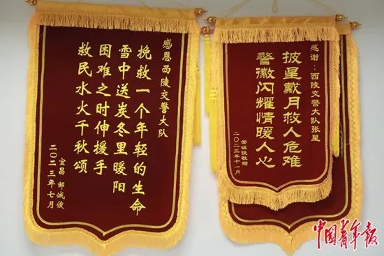 △ 邹诚俊送给西陵交警大队和张星的锦旗。中青报·中青网见习记者杜佳冰/摄对于那些素未谋面的陌生人,邹诚俊不知道怎么感谢。他发了条视频,说:“过年的时候,来我家吃年猪吧。”