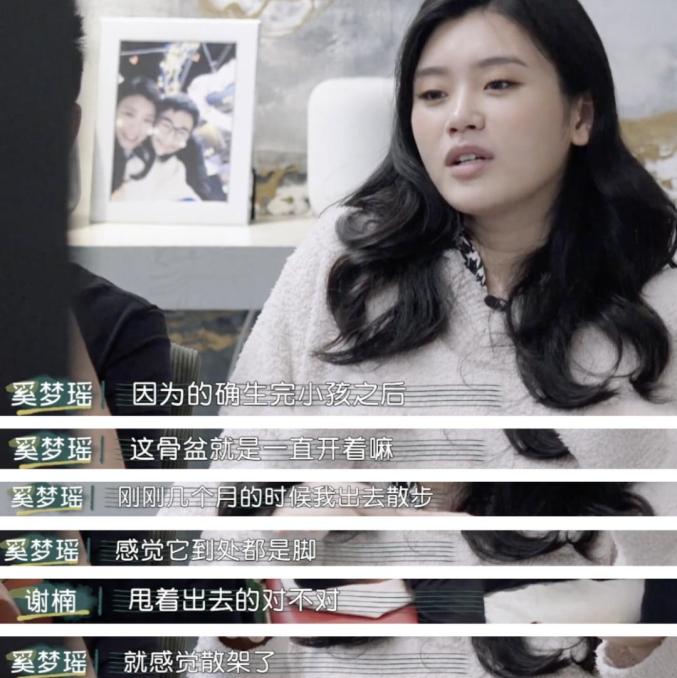 在综艺《幸福三重奏3》节目中,奚梦瑶曾谈到自己因为怀孕导致脊柱错位引起了热议,在正骨过程中奚梦瑶就聊到自己生小孩之后身上留下的伤,因为怀孕导致脊椎错位,体重狂飙35斤,生完孩子骨盆一直开着,导致她散步都觉得双腿不是自己的,感觉好像散架了,想到就焦虑。