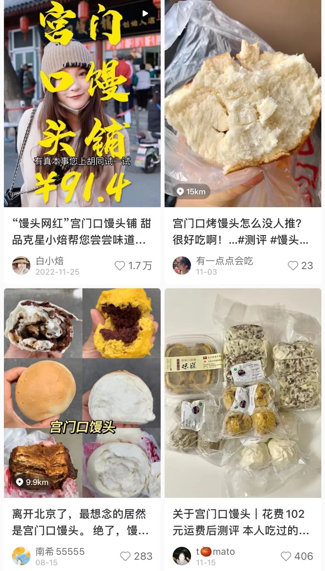 “在网上随便一搜宫门口馒头,出来的就是血糖飙升的的博主测评,一次十个单品,看下来就种草。”