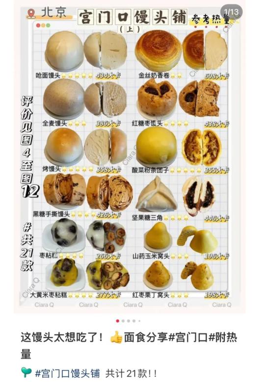 作为北京年轻人自己的欧包,还有热心的宫门子弟梳理了馒头健康饮食图鉴,将所有馒头糕点都做了卡路里的计算,只是为了能让我们宫门人在合理范围内吃上最多的碳水,满足感拉满。