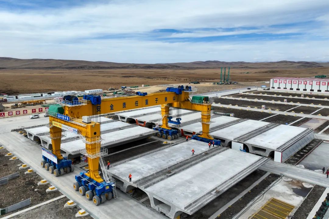 据悉,若尔盖制梁场是西宁至成都铁路郎木寺至黄胜关段(以下简称“四川段”)最大的制梁场,占地146亩。“这里地处草原湿地,表层覆盖了4米多厚的腐殖土,物体放在上面就沉。”制梁场副总工蔡飞介绍,项目团队今年2月进场后,用2个月时间清理了38.9万方腐殖土,再回填、打混凝土,才建成了梁场。