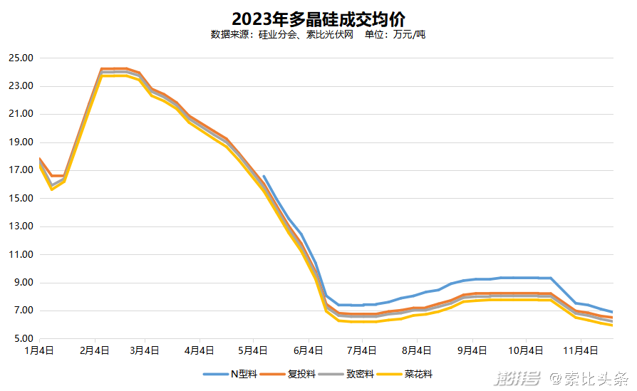 11月22日,中国有色金属工业协会硅业分会发布了太阳能级多晶硅最新成交价格。