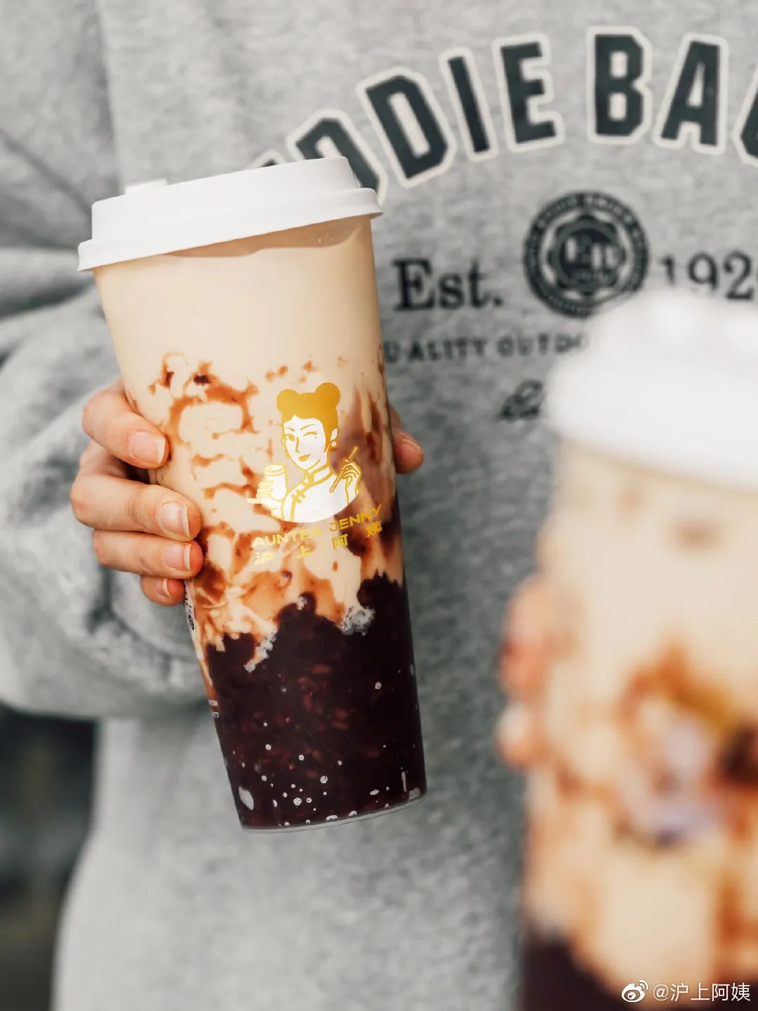 血糯米出现在奶茶里,更像粥了 | 新浪微博@沪上阿姨在早期的奶茶市场,大多数商家甚至连店面都不用租,一个小摊就能开张。产品原料就是奶茶粉,用水冲泡再加点珍珠即可,3到5块就能get满满一大杯,相信不少80、90后在学生时代都喝过这种充满香精的奶茶。