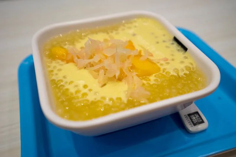 港式甜品杨枝甘露 | flickr Jessie Yin奶茶店瞄上了杨枝甘露的高人气,为了将其成功“饮料化”,在材料的体积上进行“瘦身”,以便顾客能轻松通过吸管食用,并且还会加入自己的创新,放些别的配料——珍珠、芝士、茶冻……