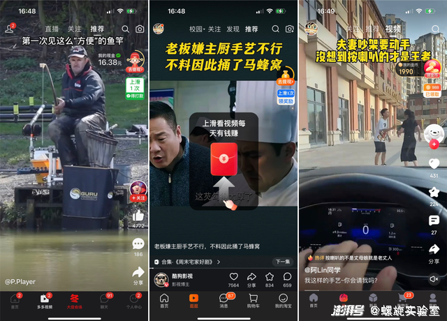 螺旋实验室同时也注意到,这些超级APP虽然都开辟了短视频频道,但根据平台不同的用户调性,其所呈现出的视频内容也有不同的风格偏向。