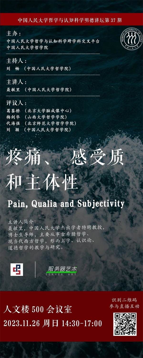 感觉之为感觉,尤其是感觉作为一种内在意识现象或主体意识现象,这就是人们一般在“感受质”这一主题下讨论的问题。在本讲座中,主讲人聂敏里将借助对疼痛的一个哲学反思,来处理与感受质相关的一些一般性的问题。聂敏里教授在阐明感受质不可做物理主义和行为主义的还原的同时,将论证感受质的可共通性而非私人性,并表明通常对感受质的私人化的理解错误是怎样发生的,并讨论它在政治学上的后果。最后,他将从生命进化的角度对感受质及与之相关的内意识和自我意识对生命的重新奠基做出阐释。