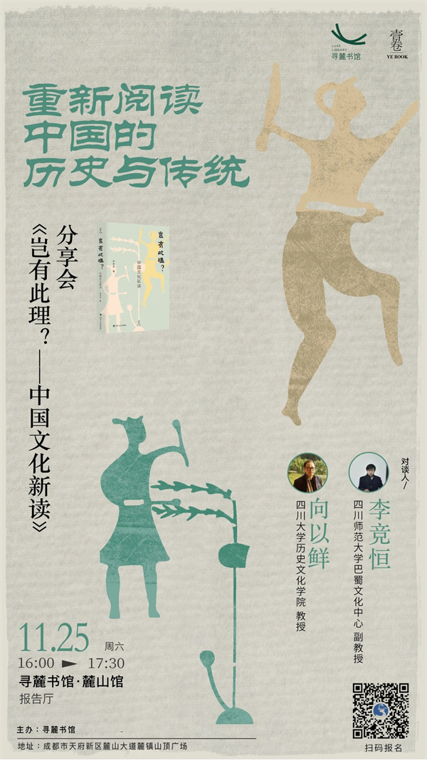 秦始皇爱护儿童吗?儒家主张连坐吗?天不生仲尼,万古如长夜?修身齐家的“家”是什么?儒家的商业观,和你想象中的不太一样;告别五四的有色眼镜……在四川师范大学副教授李竞恒的新书《岂有此理?——中国文化新读》中,他便以这些十分有趣的问题和视角切入,来重新审视中国的历史文化传统。11月25日下午,我们邀请各位读者同四川师范大学巴蜀文化中心副教授李竞恒、四川大学历史文化学院教授向以鲜一起,重新理解中国的历史和传统,找寻我们的文化中安身立命之根、生生不息之源。