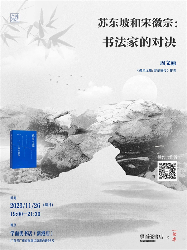 在北宋的书法艺术领域,苏东坡和宋徽宗都是极有影响力的人物。两人风格完全不同,也并未有太多交集,但两人却围绕书法展开了一场漫长的竞争:宋徽宗曾把苏轼列入“奸党”,下令销毁其诗文雕版,而在北宋末期,宋徽宗又让内府搜访苏轼墨迹,一幅字价值万钱,掀起一股搜寻、进献苏轼书迹的热潮。两人之间,究竟谁胜利了,谁失败了?周日晚,《孤星之旅:苏东坡传》作者周文翰做客学而优书店,讲述作为书法家的苏东坡的成长、成名,以及他与宋徽宗之间围绕书法的文化权力的非对称竞争。