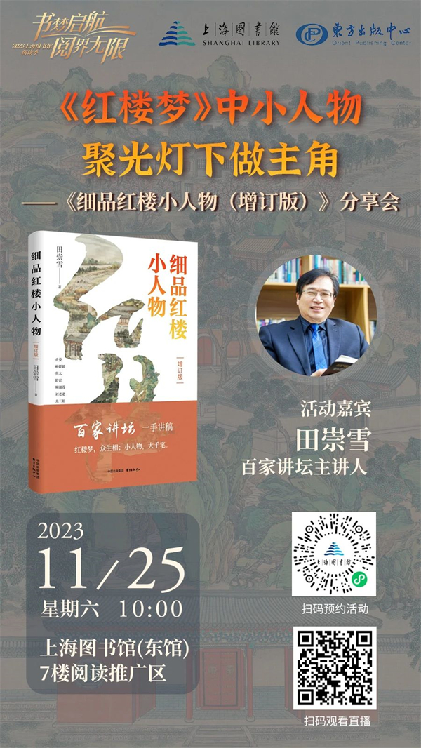 上海|《红楼梦》中小人物,聚光灯下做主角 ——《细品红楼小人物(增订版)》分享会