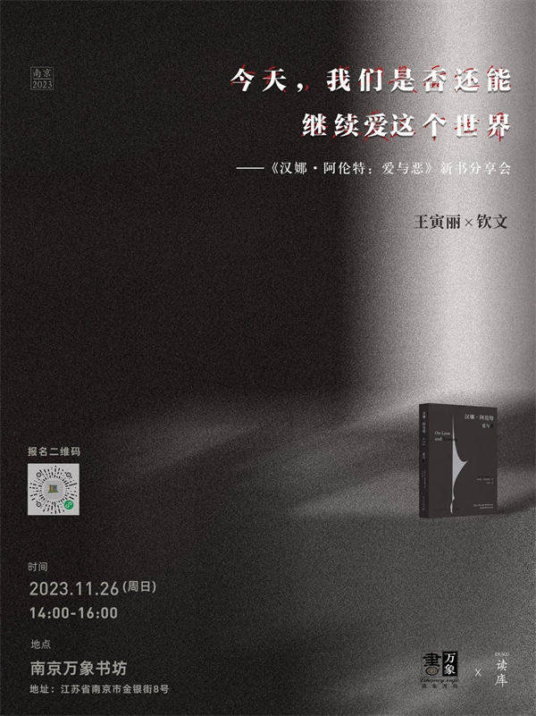 南京|今天,我们是否还能继续爱这个世界——《汉娜·阿伦特:爱与恶》新书分享会