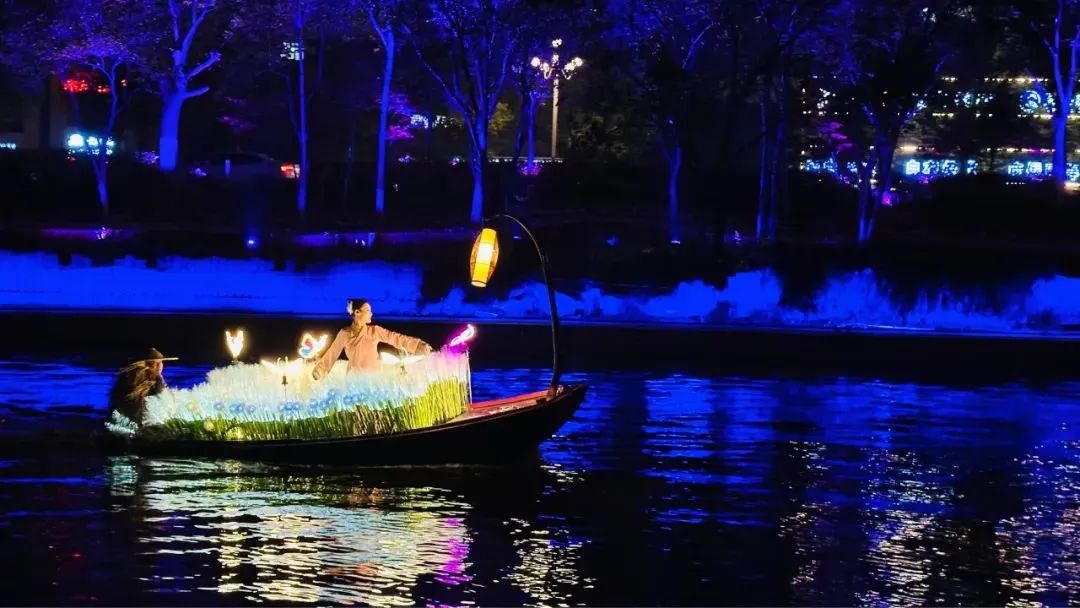 在这里还能感受《夜画琅琊》行进式游船演艺,以涑河水岸夜景为画布,以临沂历史文化为内涵,用激光水幕、视觉特效、歌舞表演、游船伴游、科技化秀场等表现形式,为大家呈现“人在船中坐、船在画中游”水中的场景,打造了全国首部魏晋文化主题行进式夜游实景演出。