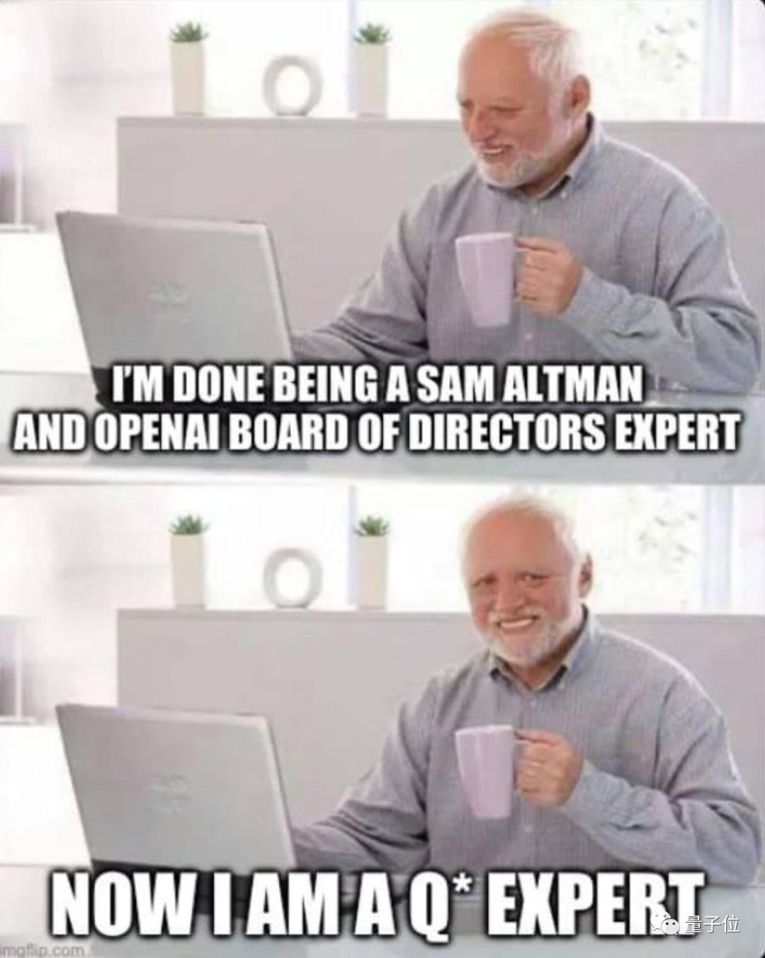 最新的梗图则是,好像一夜之间,人们都从研究奥特曼和OpenAI董事会的专家,变成了Q*专家。
