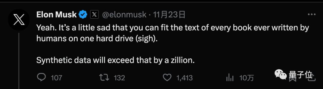 马斯克同意这个看法,并提到人类所写的每一本书只需一个硬盘就能装下,合成数据将远远超出这个规模。