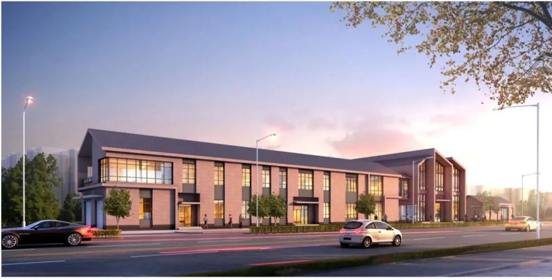 (三)注入现代元素,构建和谐人水关系设计以地域文化和人文情怀为脉络,主厂房采用现代工业风格,坡屋面使用金属板瓦材料,充分彰显现代简洁、硬朗的风格。立面采用做旧浅红色面砖墙面、黑色窗框,并配以明亮的玻璃,强调体块的穿插、材料的对比、色彩的变化,通过这些元素复合叠加,打造一个开放、共享、自然、包容的新派“石库门”风格建筑。在外,去繁存简,减轻视觉重量,营造纯净的形体关系;于内,打破传统水闸建筑粗犷笨拙的形象,融入周边环境及现代都市的发展。内外交融,共同编织出一组“高度融合,和而不同”的建筑聚落。