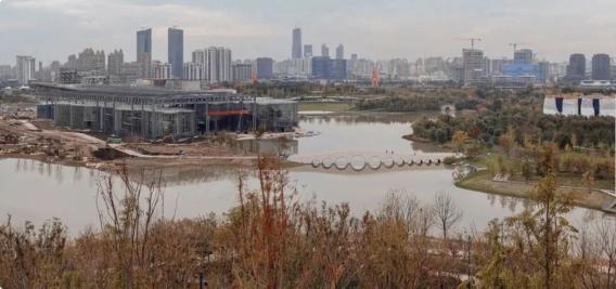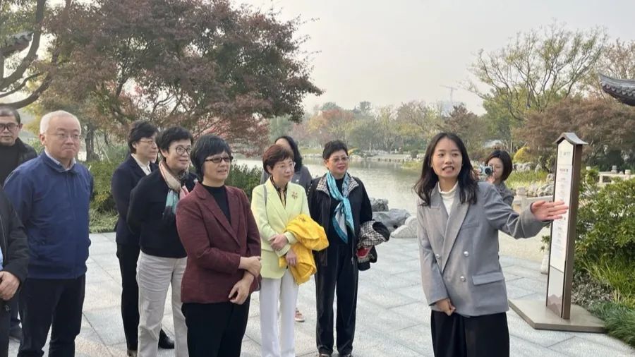 站在公园中心湖上的十一孔桥,可见岸边在建的双子山,代表们看着已具备雏形的双子山,饶有兴趣地向工作人员询问了解双子山的具体规划建设情况。据了解,双子山项目采用山型布局,利用结构空腔形成绵延的山形特征,并覆盖多种植被形成人造山体,展现都市山林风貌。山间设置曲幽步道,可供市民散步休憩、登坡望远。内部空间则将建成停车场,集聚游览、停车、游客服务等多种功能,实现公共建筑内部空间结构与外部生态拓展的功能结合,展示了城市发展和生态保护两相宜的“绿色智慧”。随后,代表们参观了公园中独具江南园林文化特色的申园。