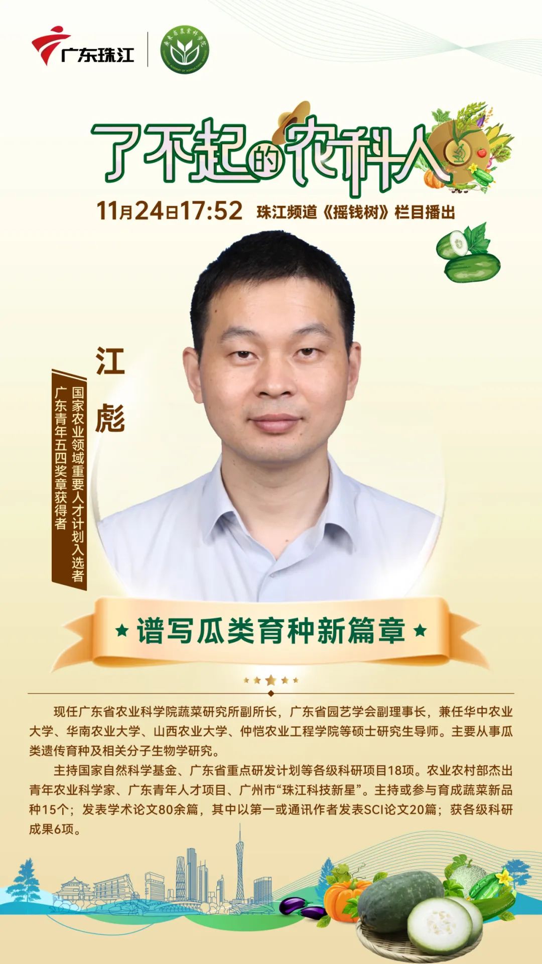 原标题:《了不起的农科人⑦江彪:走近瓜类育种专家》