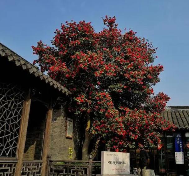 说到爱情故事,如果这棵槐树代表着一种春心萌动的美好,那么溱潼古镇的山茶树则有着一种爱而不得的凄美。