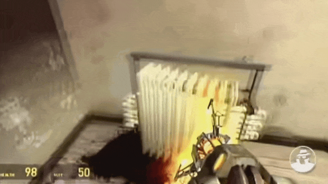 最惊艳玩家的,是《 半条命 2 》真实成熟的物理引擎。当时的游戏是怎么展现物理机制呢,无非是预设好一个动画,等到了触发范围就播放,难免让人有点出戏。
