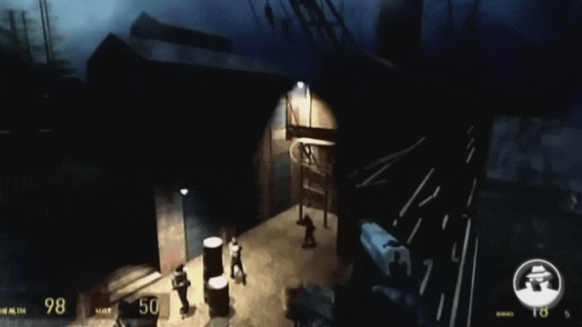 《 半条命 》的 NPC 也有了一定 AI 能力,官方也鼓励玩家与周围环境互动。你躲在箱子后面,敌人会扔手雷把你逼出来;有的关卡需要你开启阀门,利用热蒸汽去杀死怪物;有的地方需要你借助箱子才能到达;