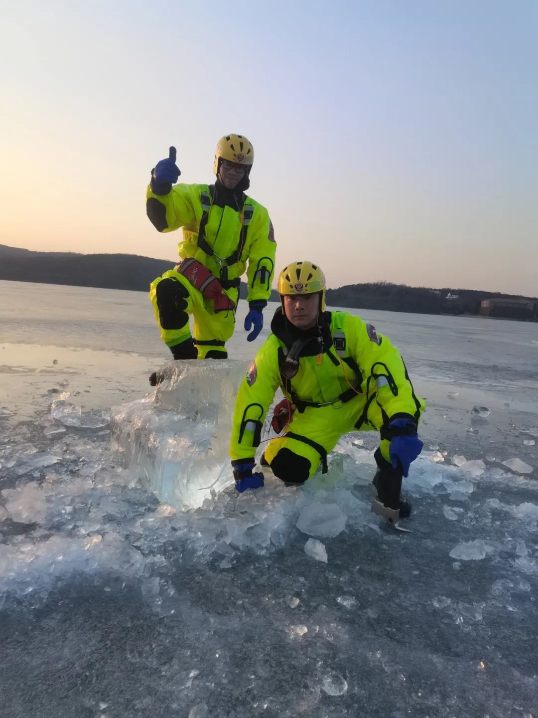 初到辽宁,寒冷让生活在南方的施安超猝不及防,第二天就因风寒侵袭高烧40度。“绝不能给总队丢脸”、“只有我练好了,才能回去教好队员”,带着这一份信念,施安超坚持“轻伤不下火线”,零下30度的冰水一泡就是3个小时,即使双手满是冻疮也未萌生丝毫退意。经过刻苦的学习和训练,施安超熟练掌握了冰域探测技术、冰面落水救援技术、冰域切割与移除等救援技术,弥补了崇明支队冰域救援技术上的空白。
