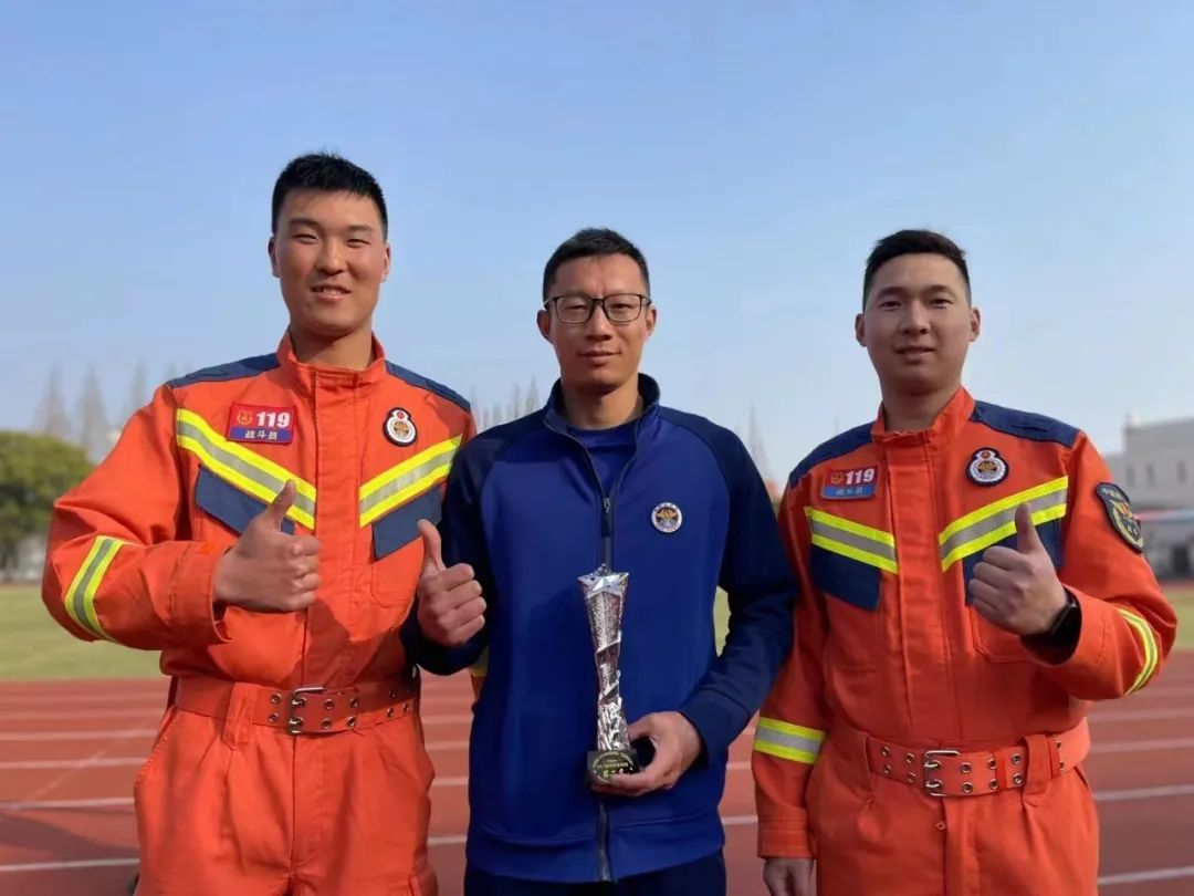 正是这股狠劲,施安超练就了过硬的业务技能。在2019年总队执勤岗位大练兵上取得十五米金属拉梯第三名的优异成绩,在支队比武竞赛上取得九米拉梯和挂钩梯联用操第一名、楼层火灾快速出水操第二名的成绩。连续5年蝉联支队春运会3人7带项目第一名,队站跳绳队也屡创佳绩,逐渐成为崇明支队的“跳绳担当”。多年的沉淀让他成为了队站“传帮带”工作的重要环节,提起“拼命三郎”施安超,队里每个人都肃然起敬。