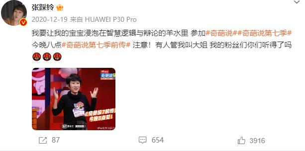 在奇葩说的辩论场上,张踩铃分享过她和女儿的一段生活琐事。