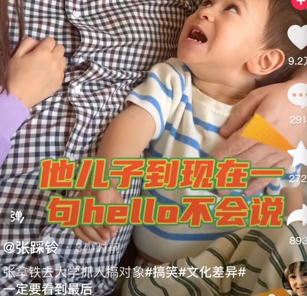 张踩铃吐槽道,他儿子到现在连句hello都不会说,人大的同学们就好自为之吧。