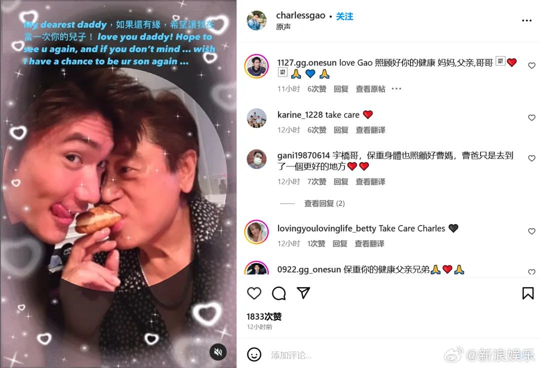 男星高圣远、余文乐老婆王棠云等随后也在评论区悼念