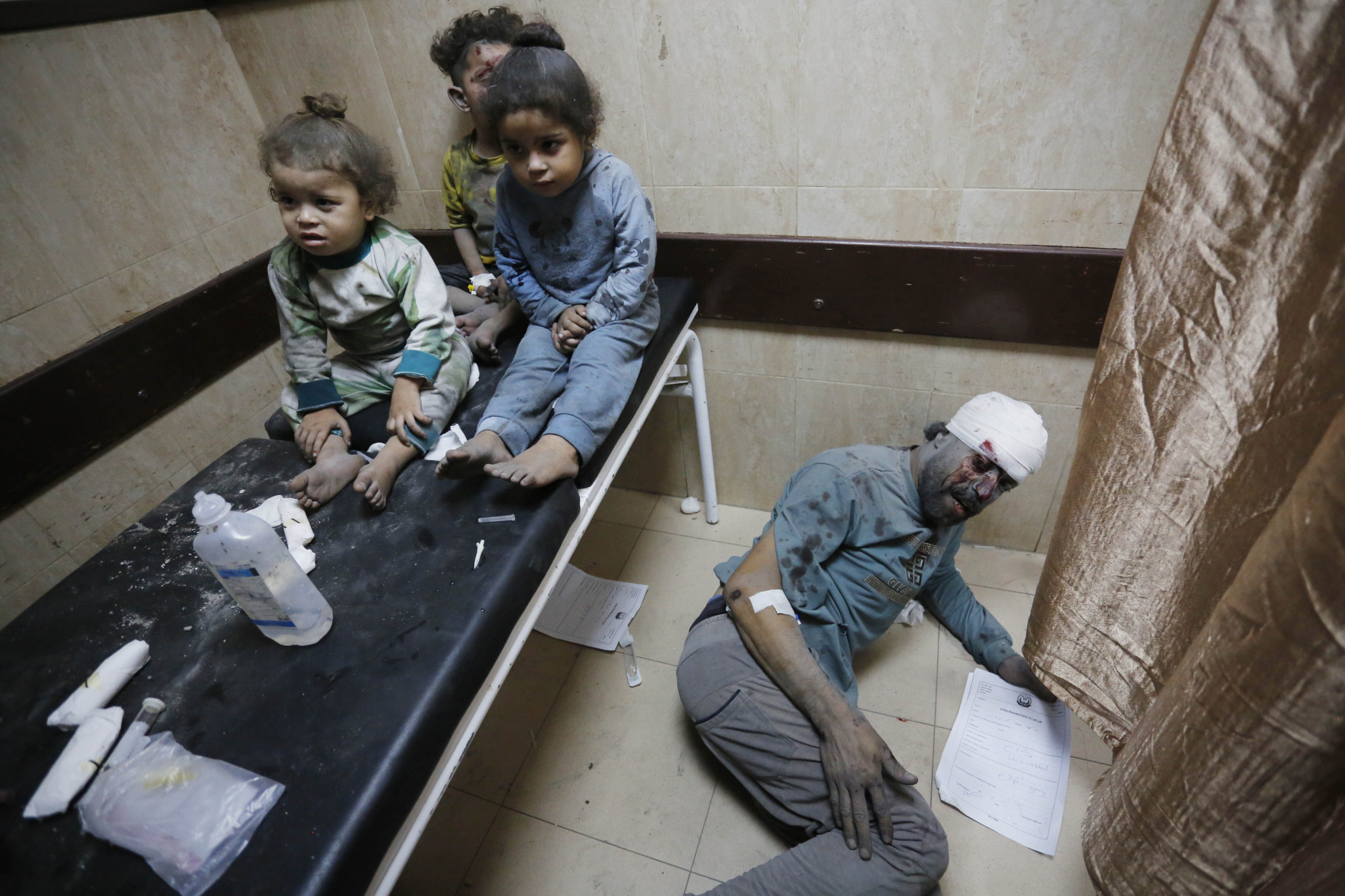 加沙地带代尔巴拉赫,受伤的儿童在医院等待治疗。 据世界卫生组织称,加沙南部地区目前只有1家医院有能力治疗危重创伤病例或进行复杂的手术。 澎湃影像 图