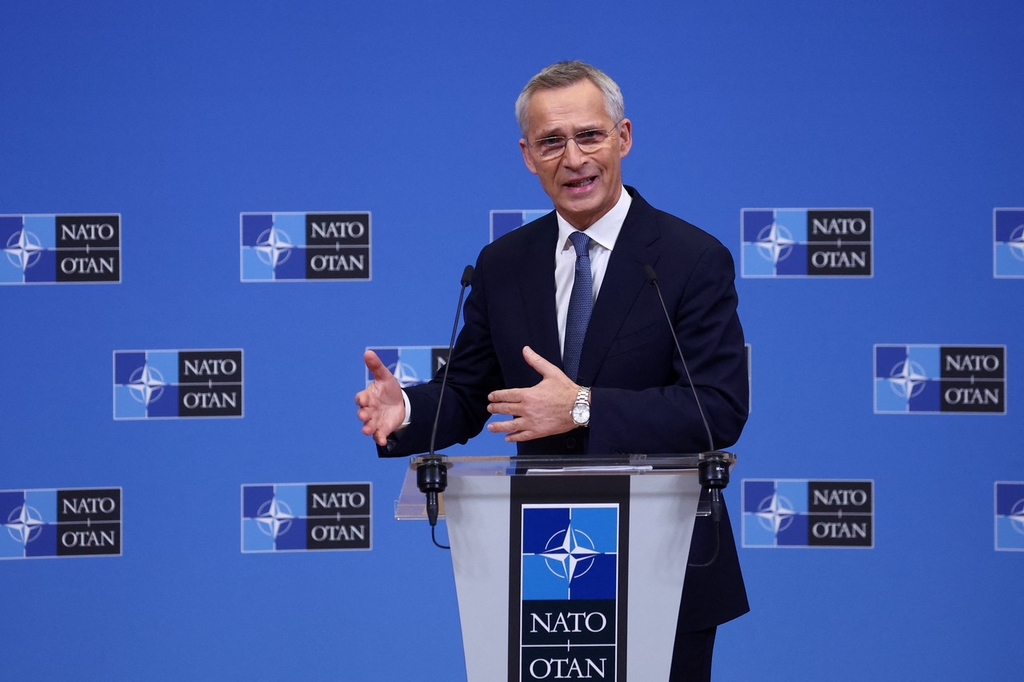 当地时间2023年11月27日,比利时布鲁塞尔,北约秘书长斯托尔滕贝格在北约外长会前举行新闻发布会,重申对乌克兰提供“长期支持”。