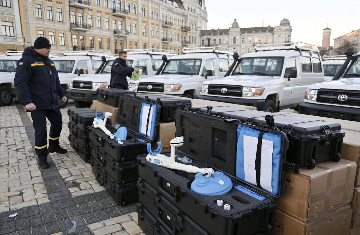 当地时间2023年11月20日,乌克兰基辅,日本向乌克兰捐赠探雷器和车辆。