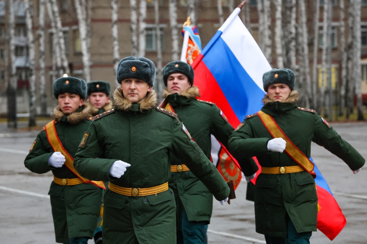 当地时间2023年11月19日,俄罗斯新西伯利亚,第39近卫火箭师新兵参加宣誓仪式。