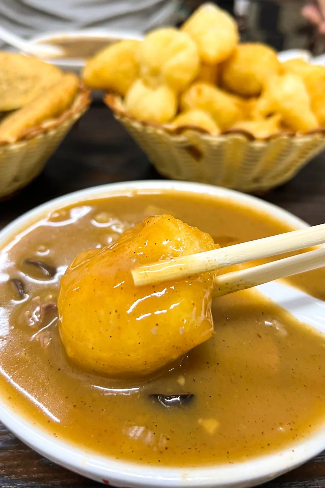 农业的发达,为美食的产生提供了富足的物质前提。加上位于黄河与大运河沿岸,交通之便促成了天南海北商贾来往频繁,使得菏泽更是成为了一个招揽四方来客的汇聚所在。不管是从哪来到菏泽,都少不了迎接一场碳水与油脂的“轰炸”。炸面泡、炸糖糕、炸肉盒……琳琅满目的油炸食品足以驱散冬日的寒风,吃上一口保管一整天都干劲十足。